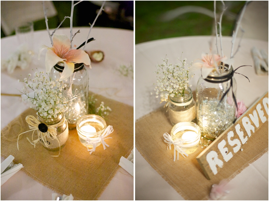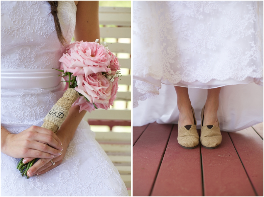 These beautiful bouquets were handmade by Ginny and her bridesmaids that very morning! Ginny’s had an embroidered burlap wrap with her and David’s initials. Such a sweet detail.