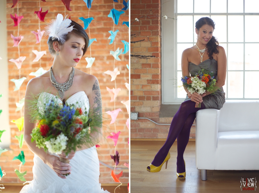 Large statement pieces of jewelry from Oh So Curio and the feathery headpieces from Petals by KC worked perfectly with our theme …